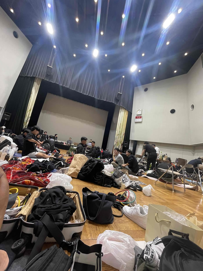チェックインを済ませて控え室に入ると、そこは真っ黒なマッチョたちの集会所。