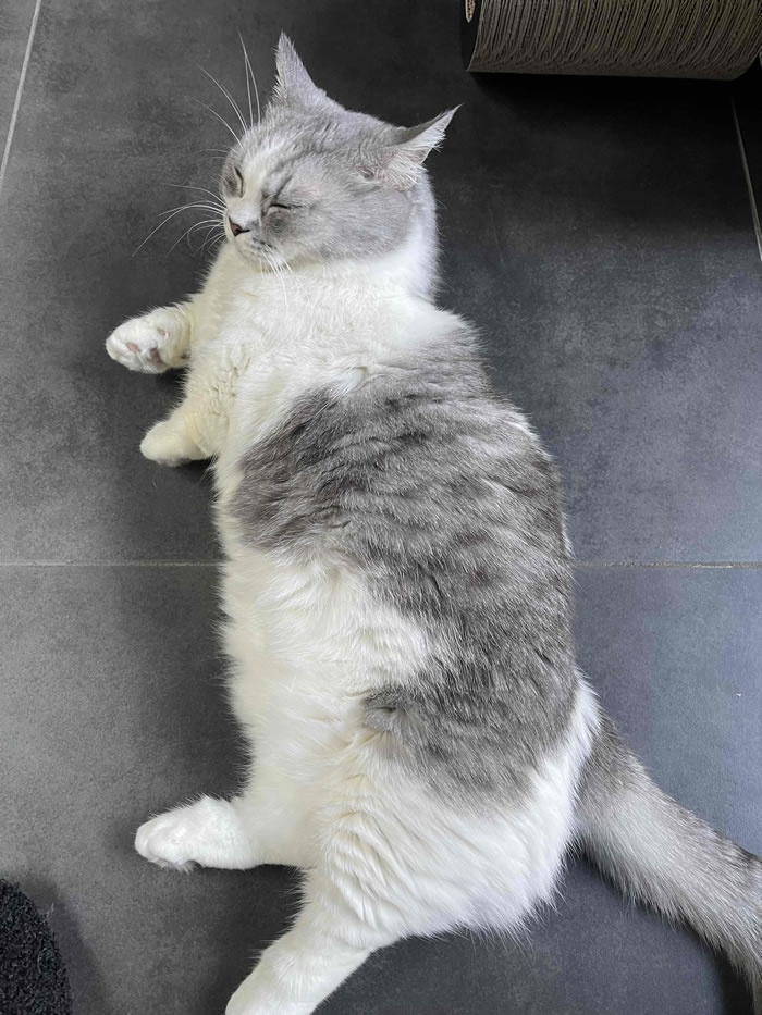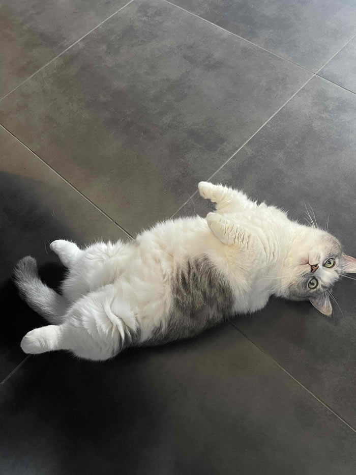 ついでにうちの愛猫もチュールをたっぷり食べて、こちらもぱんぱん。