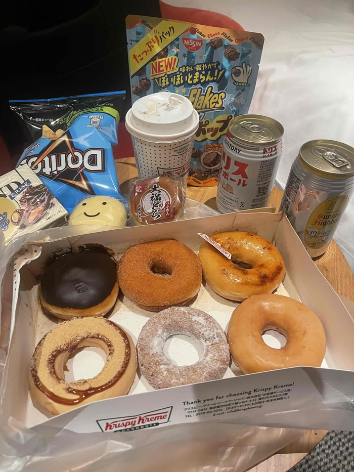そのあとドーナツと、昨日OKスーパーで買っておいた酒とつまみを広げ、今日は早めに寝よう…と思ったものの、悔しさでなかなか寝つけず。