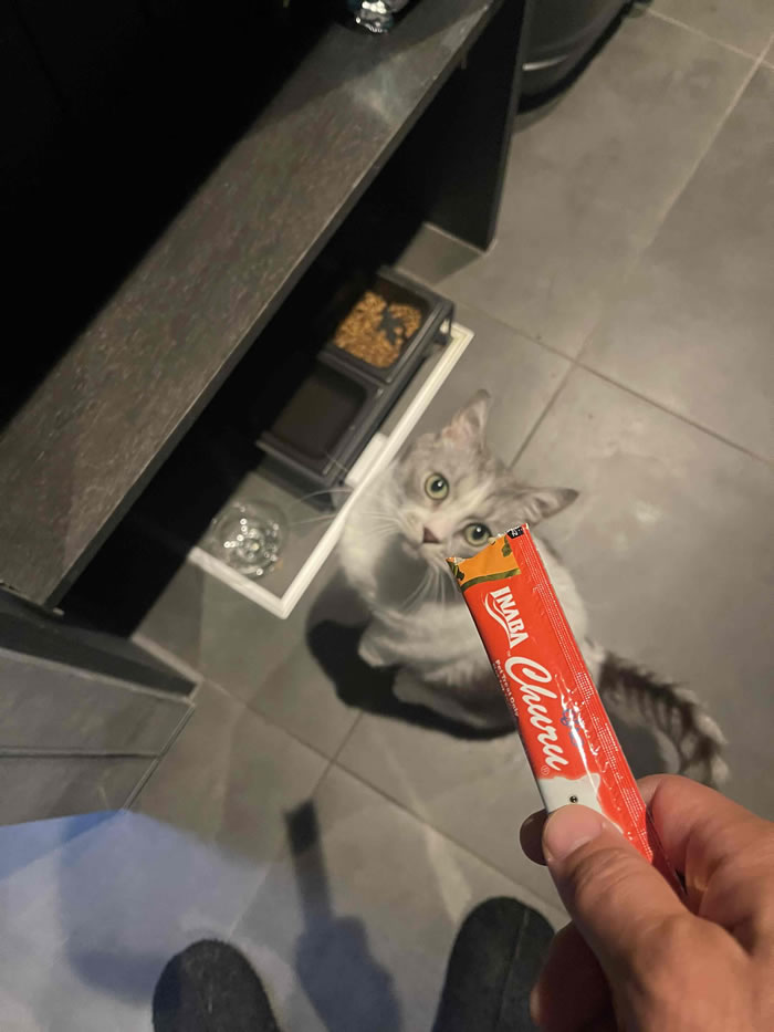 最後にチュールあげる時だけちょっと芸をしてくれる愛猫♪