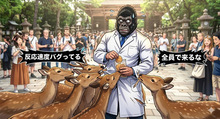 「鹿はせんべいで暴走、猫はチュールで覚醒。」